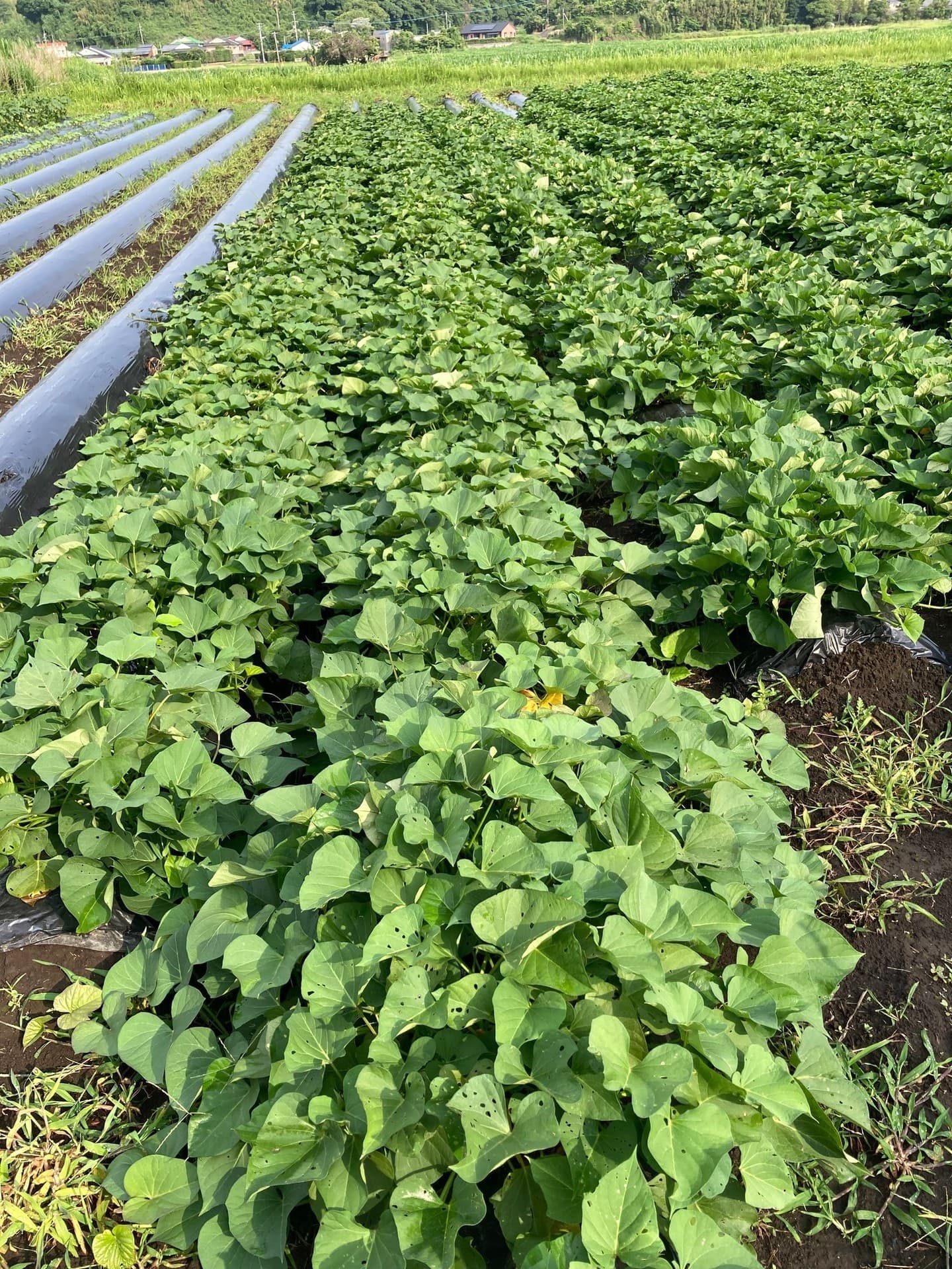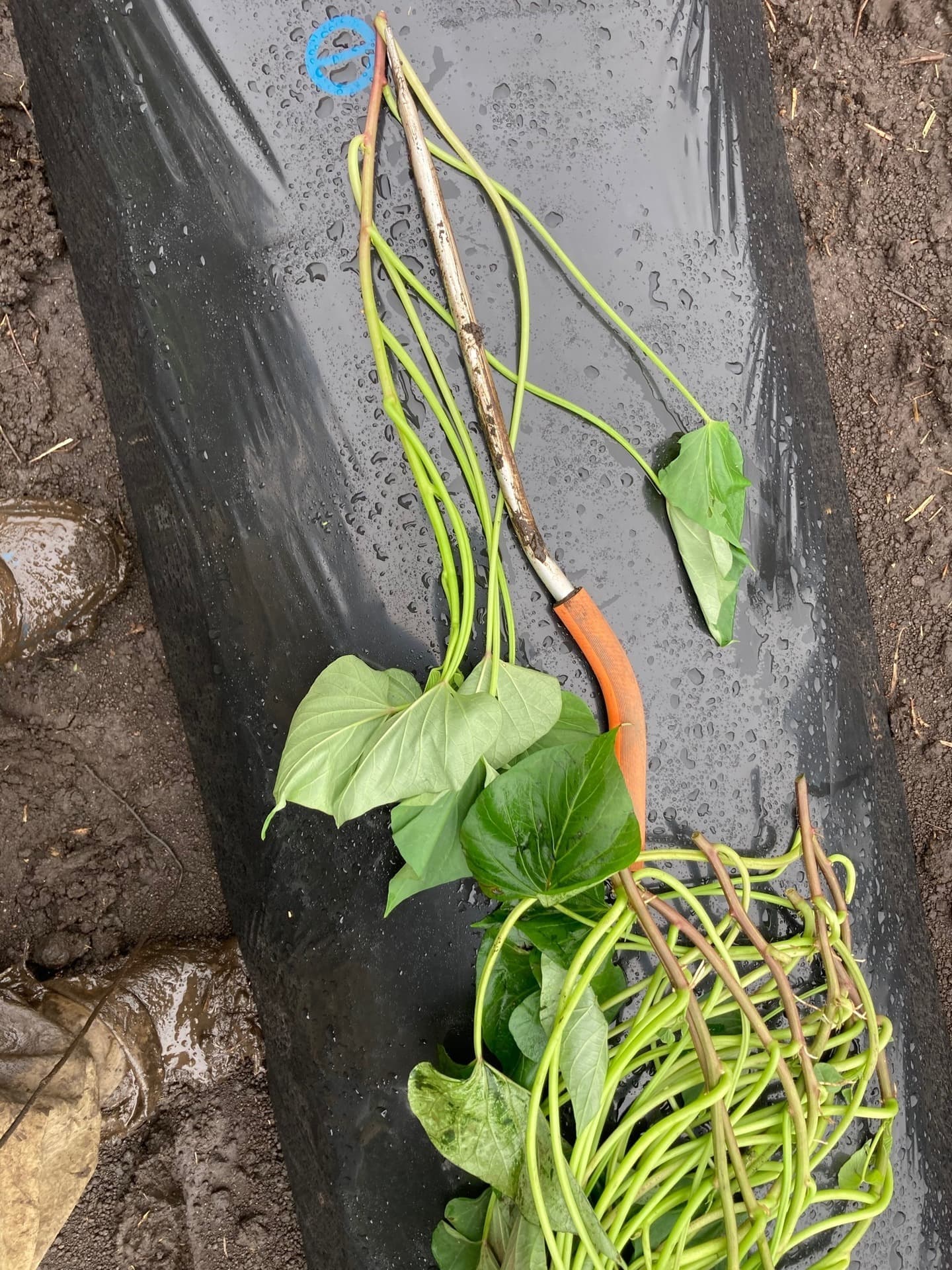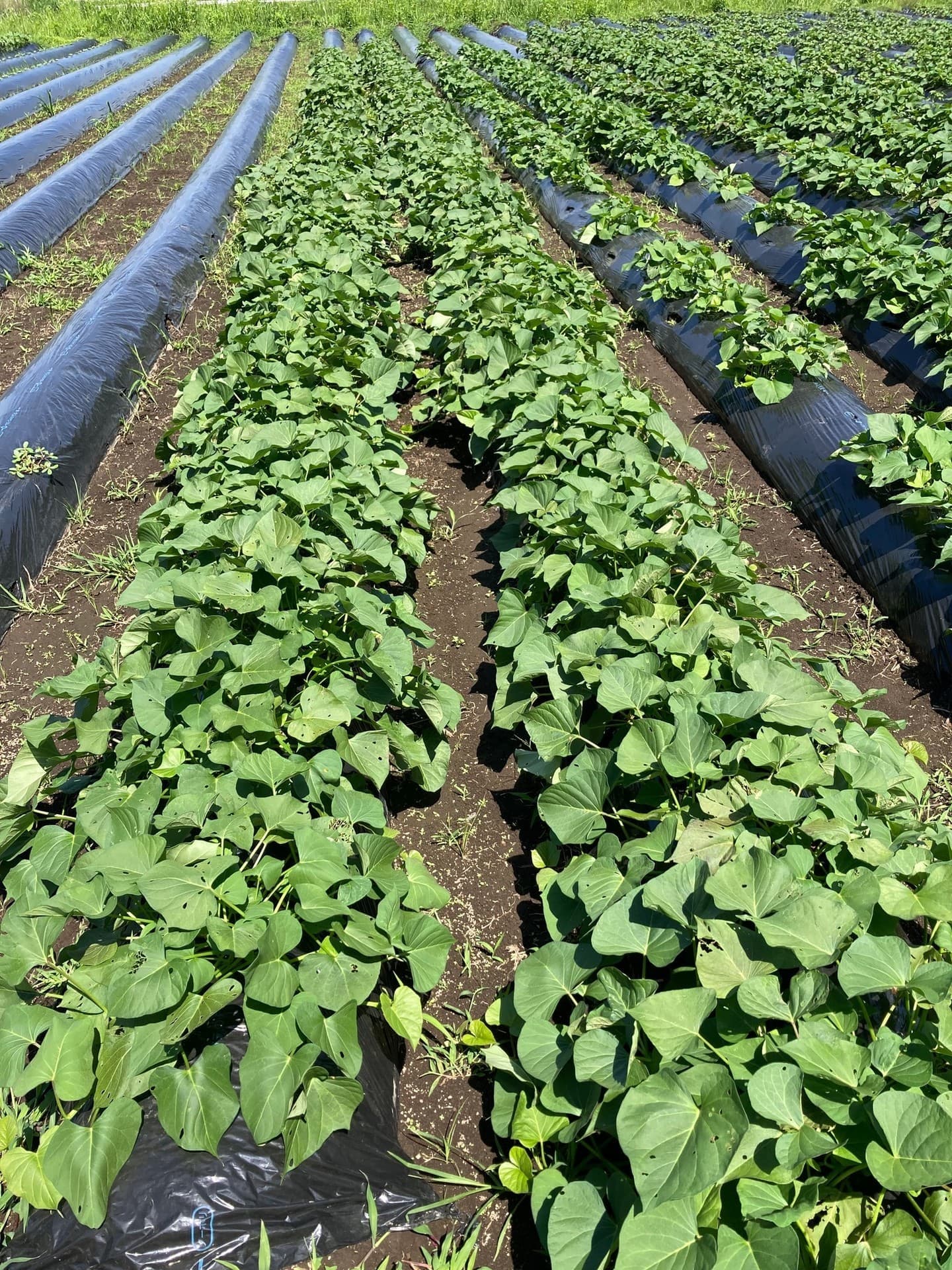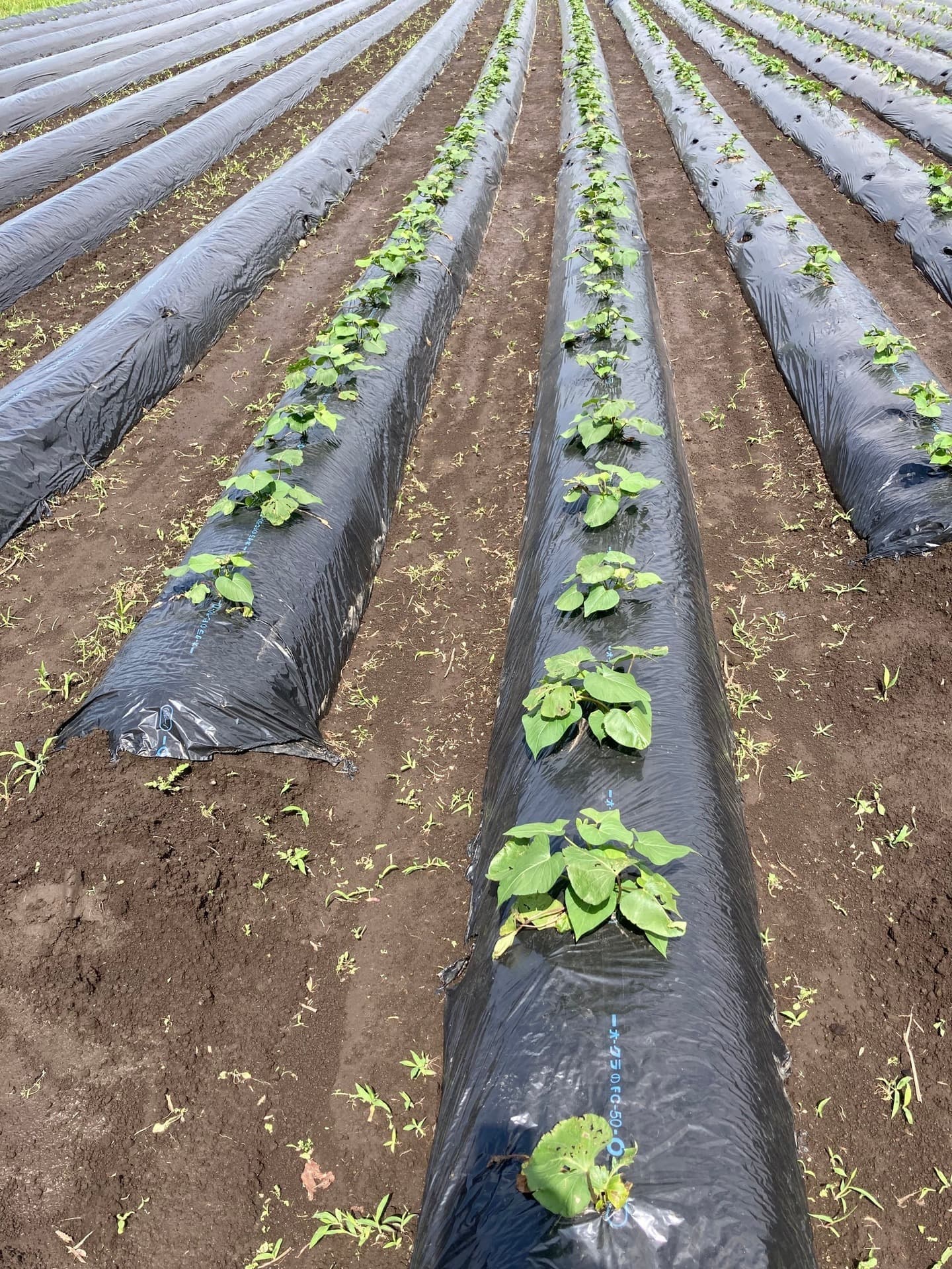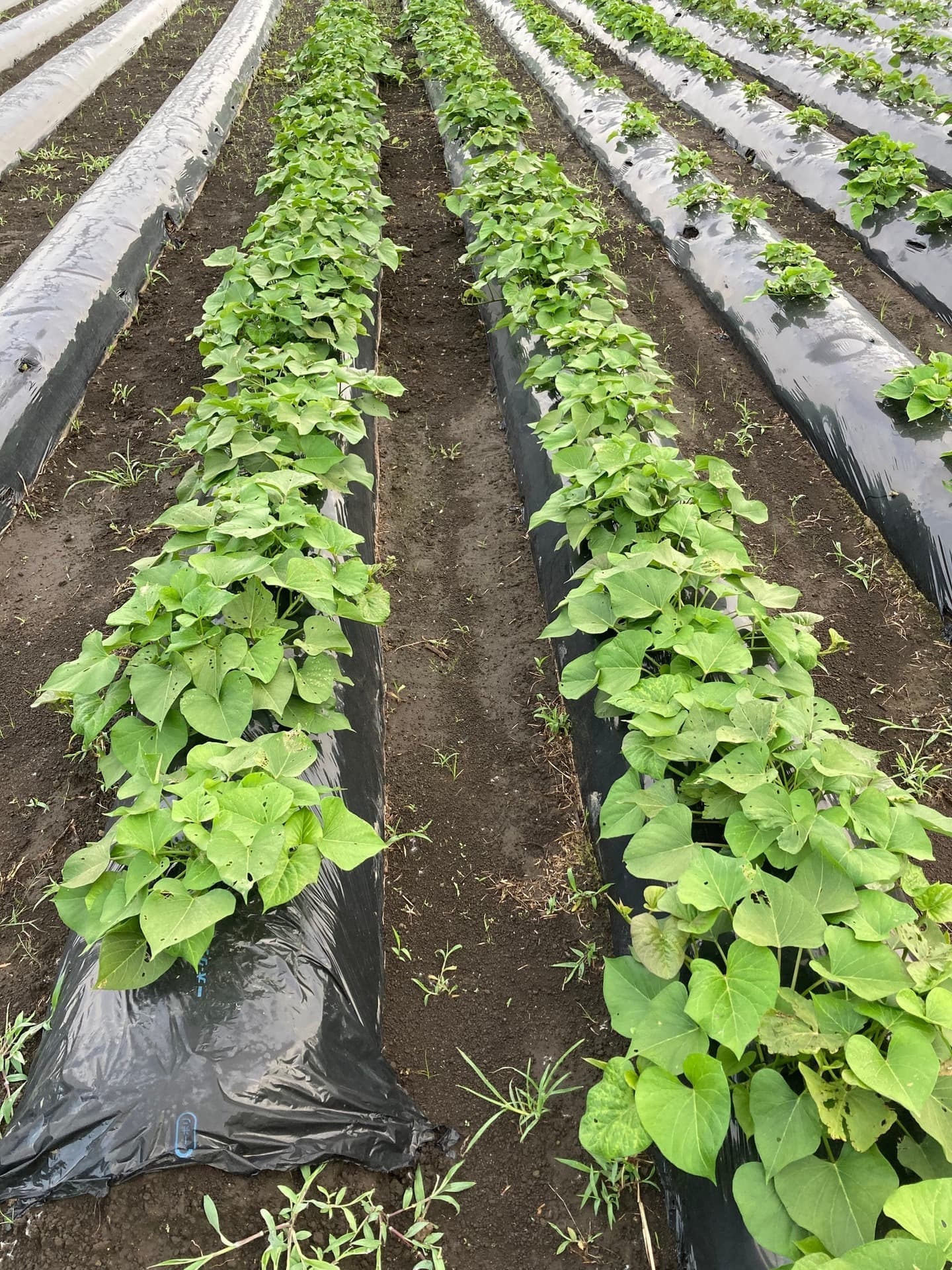 今年は昨年の経験を活かして、土壌消毒、苗のオーガニック消毒、オーガニック散布と続いて基腐れ対策に臨んでおります。苗の品種も紅マサリ、高系14号、紅はるか、紅さつま、安納芋、ヤマダイカンショと多品種で成果を見たいと思っています。定着後、オーガニック散布した苗は立ちます。