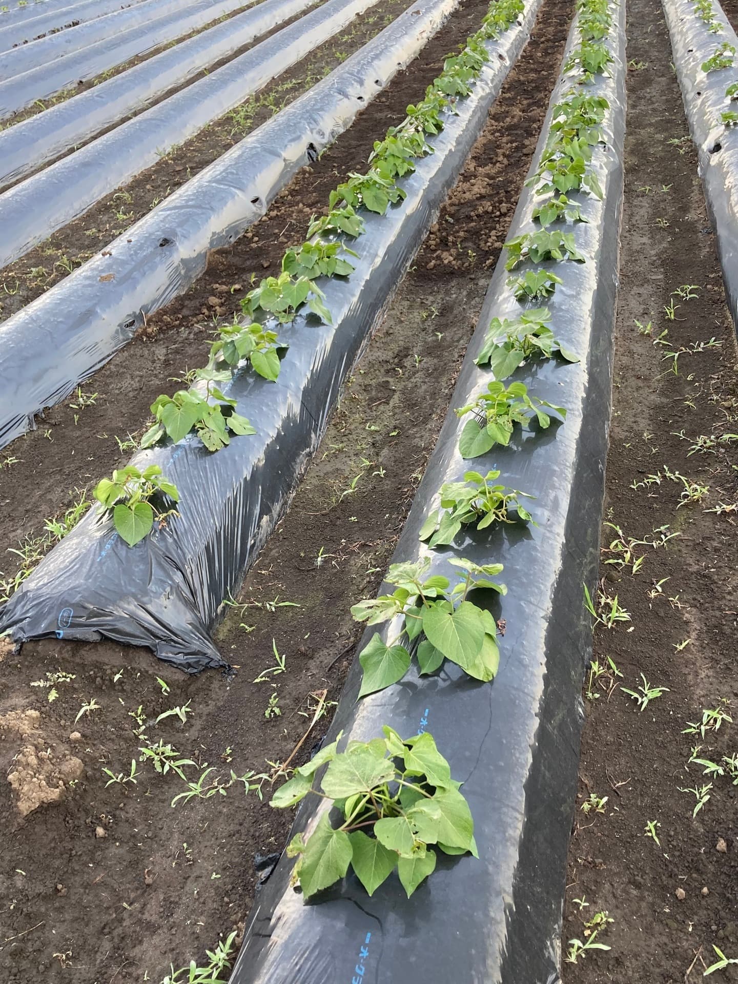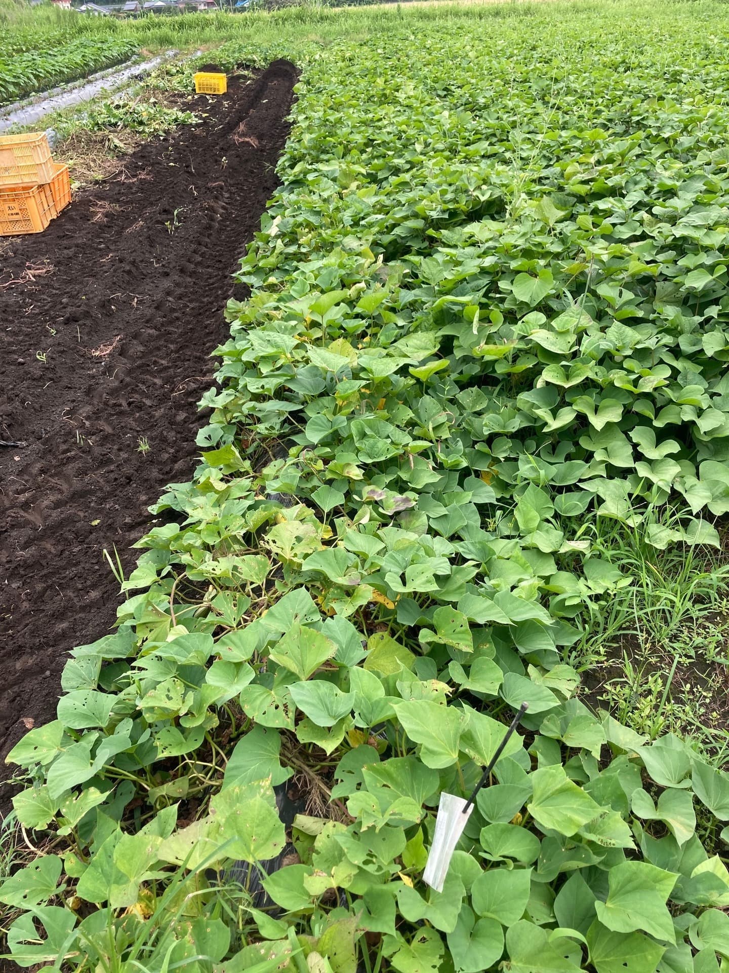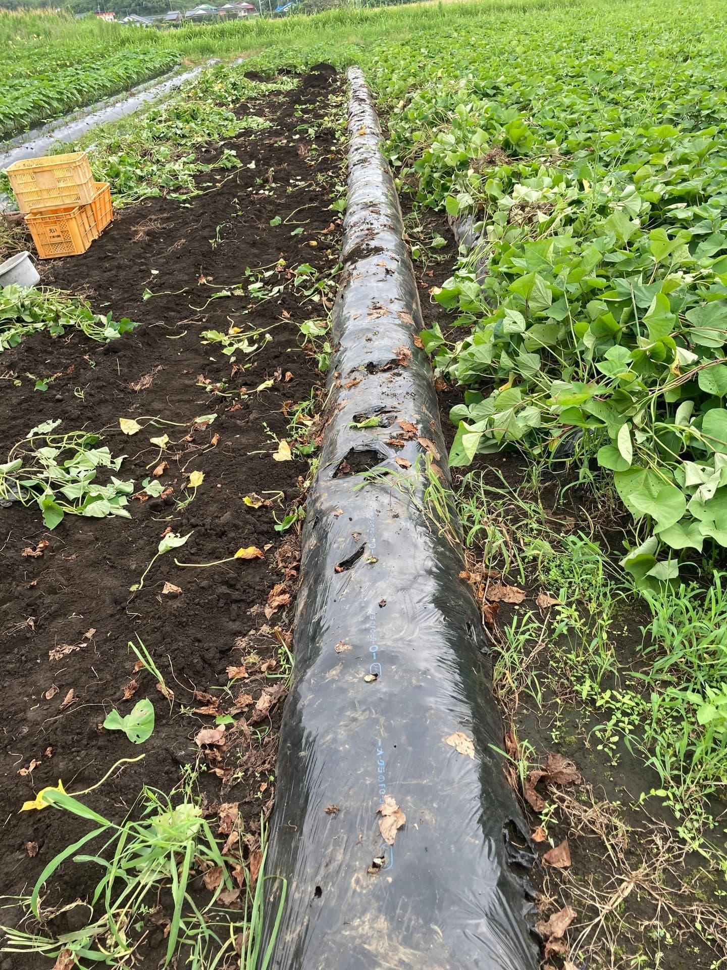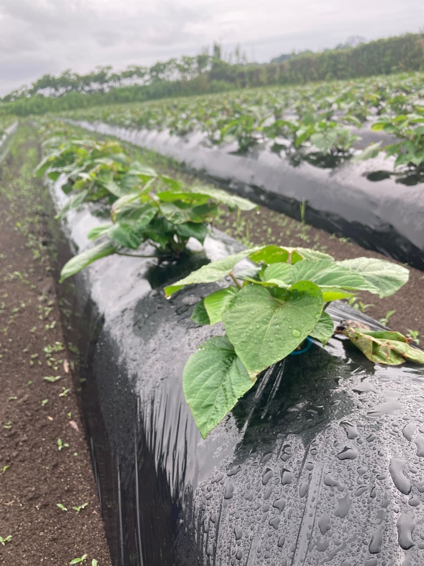 今年は昨年の経験を活かして、土壌消毒、苗のオーガニック消毒、オーガニック散布と続いて基腐れ対策に臨んでおります。苗の品種も紅マサリ、高系14号、紅はるか、紅さつま、安納芋、ヤマダイカンショと多品種で成果を見たいと思っています。定着後、オーガニック散布した苗は立ちます。