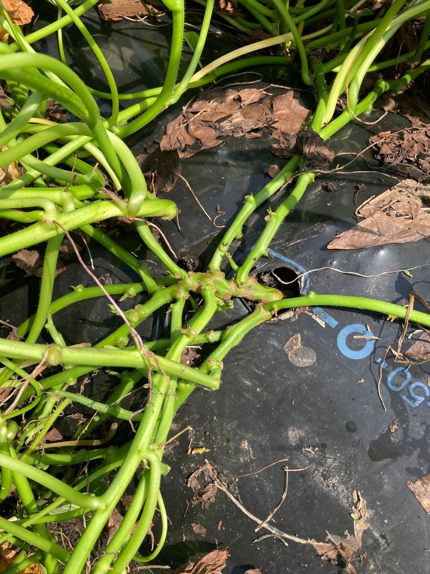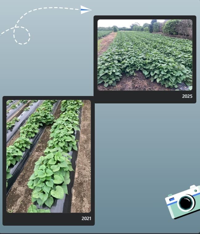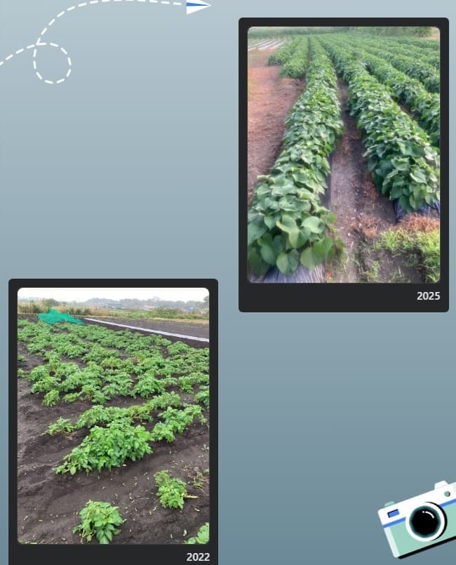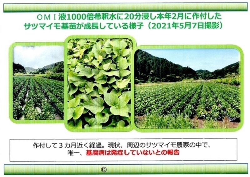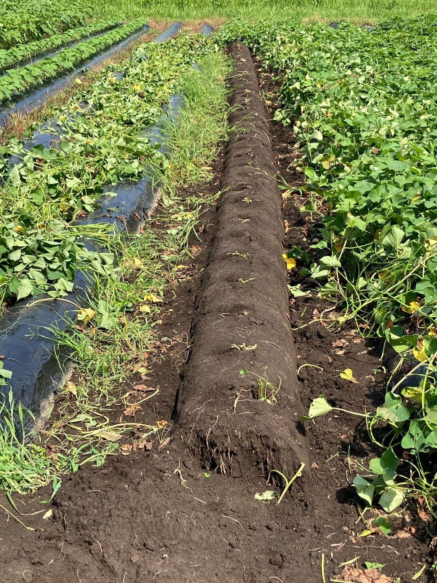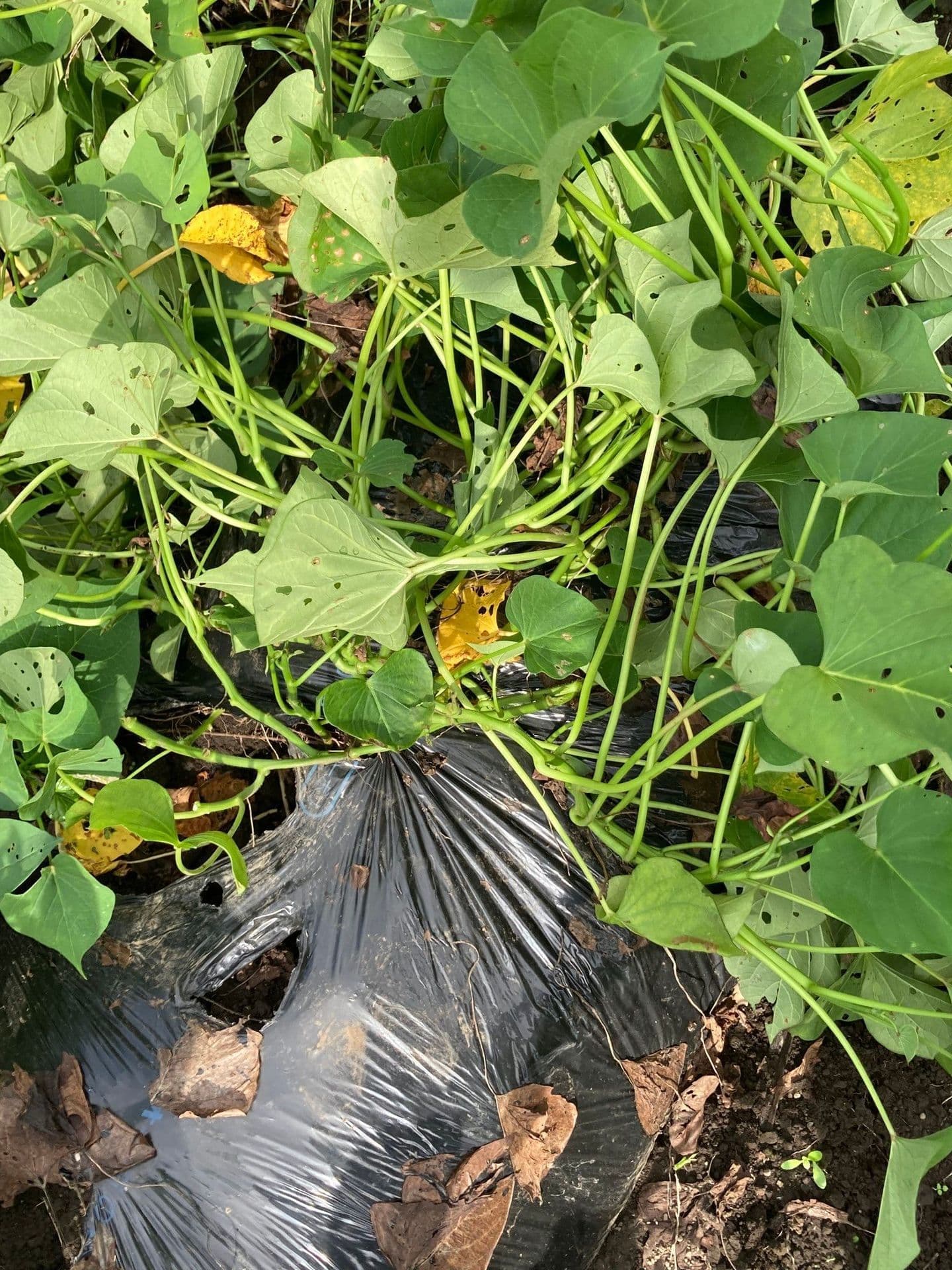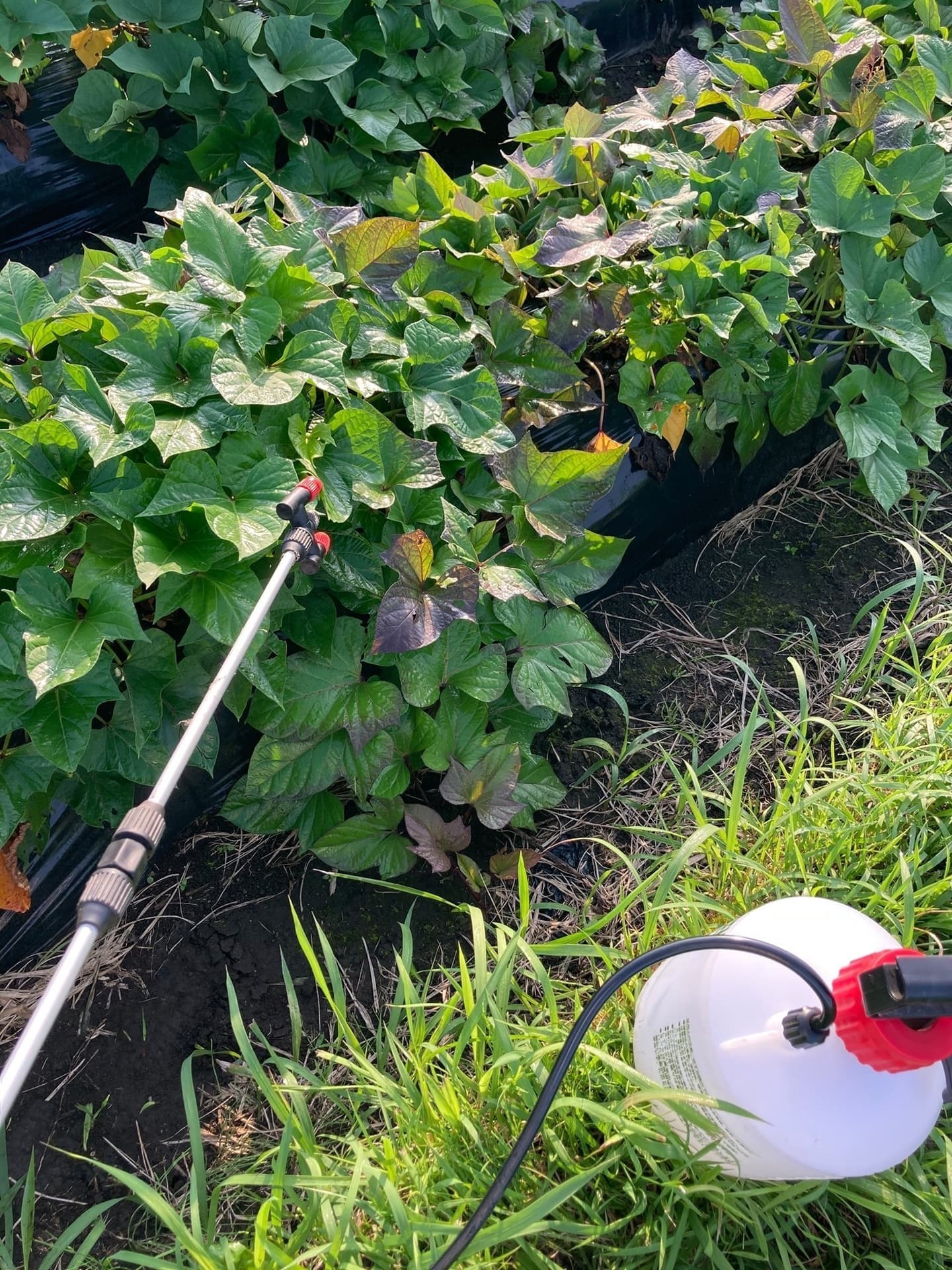 今年は昨年の経験を活かして、土壌消毒、苗のオーガニック消毒、オーガニック散布と続いて基腐れ対策に臨んでおります。苗の品種も紅マサリ、高系14号、紅はるか、紅さつま、安納芋、ヤマダイカンショと多品種で成果を見たいと思っています。定着後、オーガニック散布した苗は立ちます。