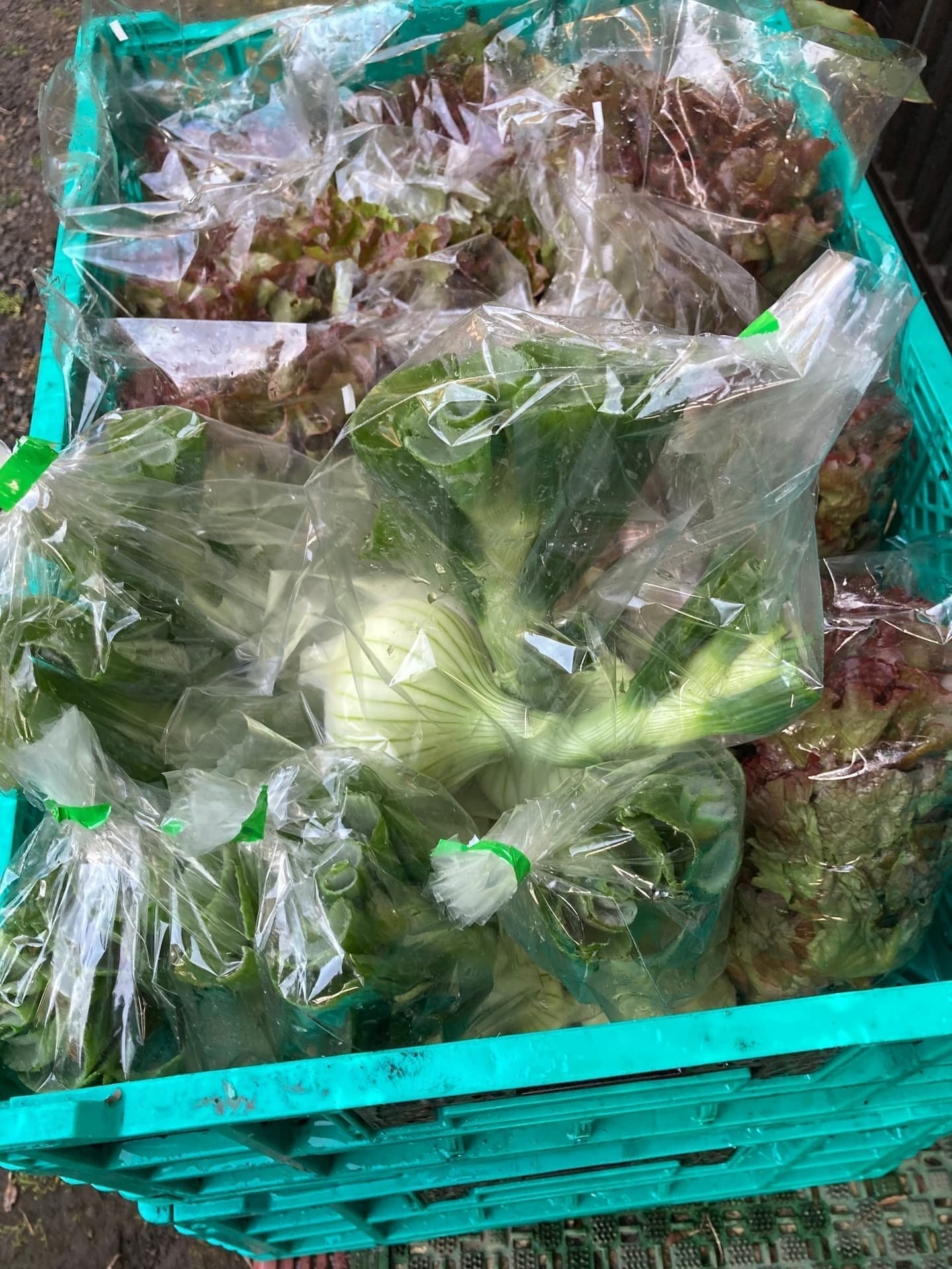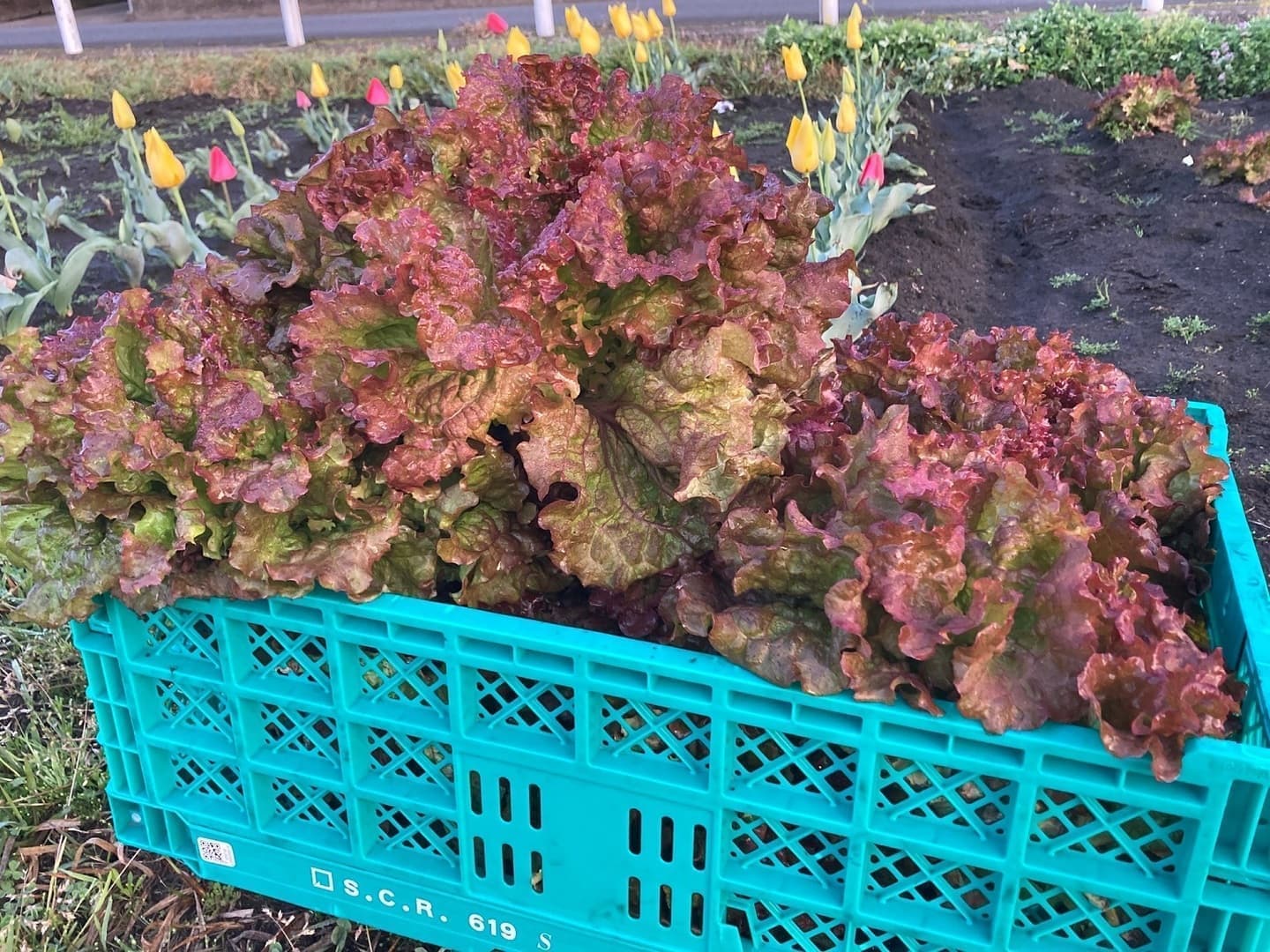 サニーレタスは昨年から年間を通して栽培しています。種から育てる方法、苗を定植する方法などがありますが、こちらも基本は同じ。牛糞と化成肥料、オーガニック栽培となります。一株あたり約200gを目処に収穫していきます。