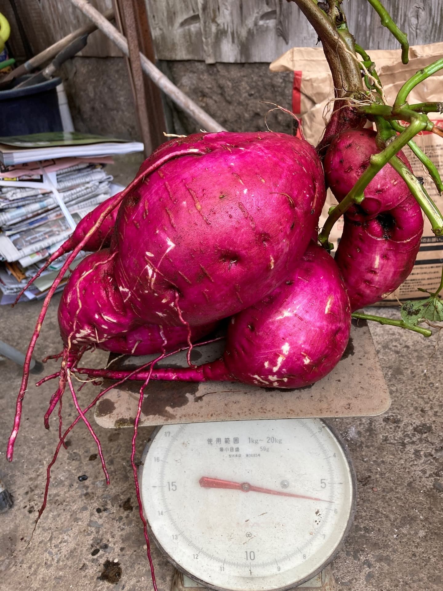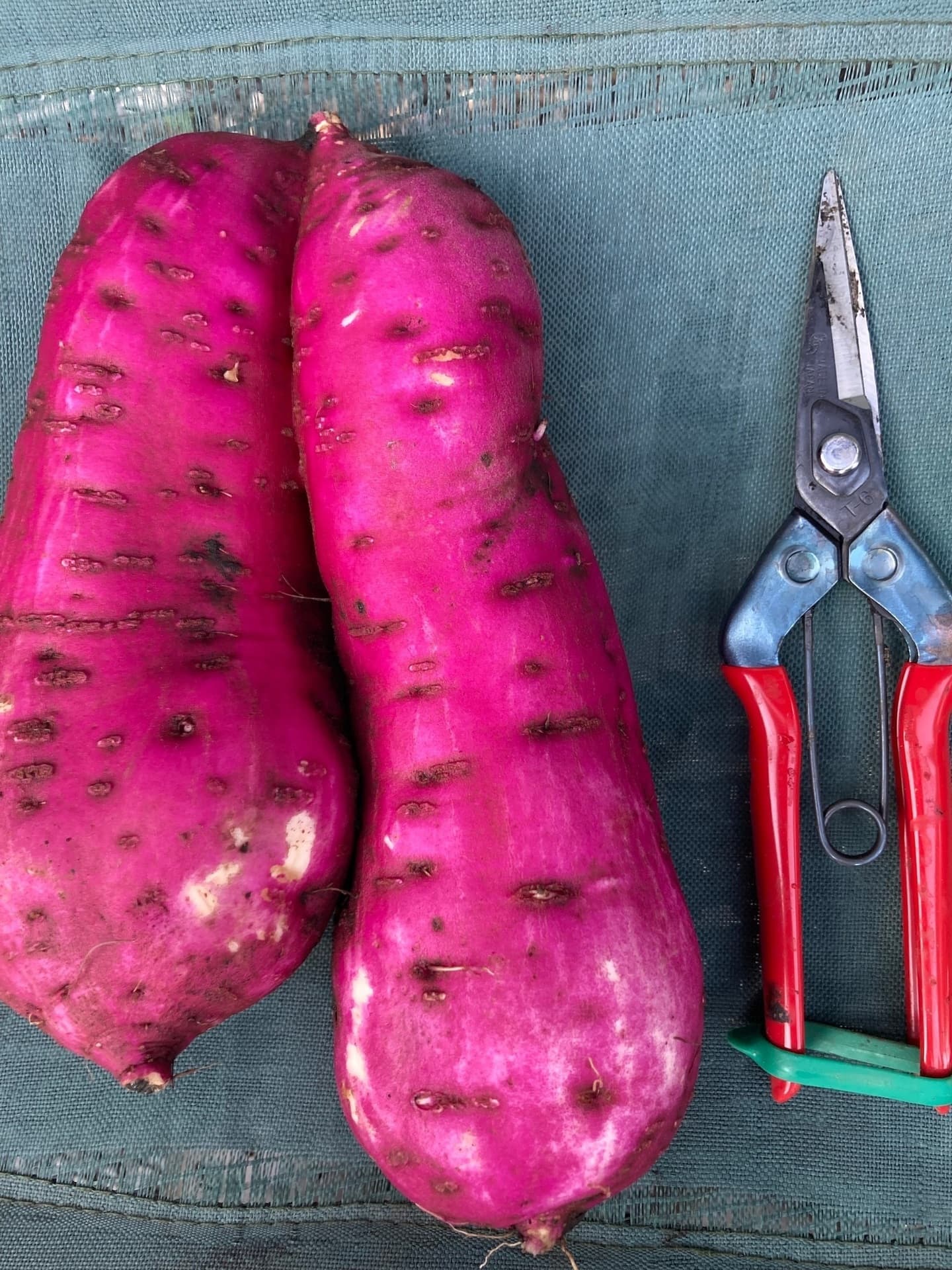初収穫の紅マサリ。綺麗な芋が出来てきました。