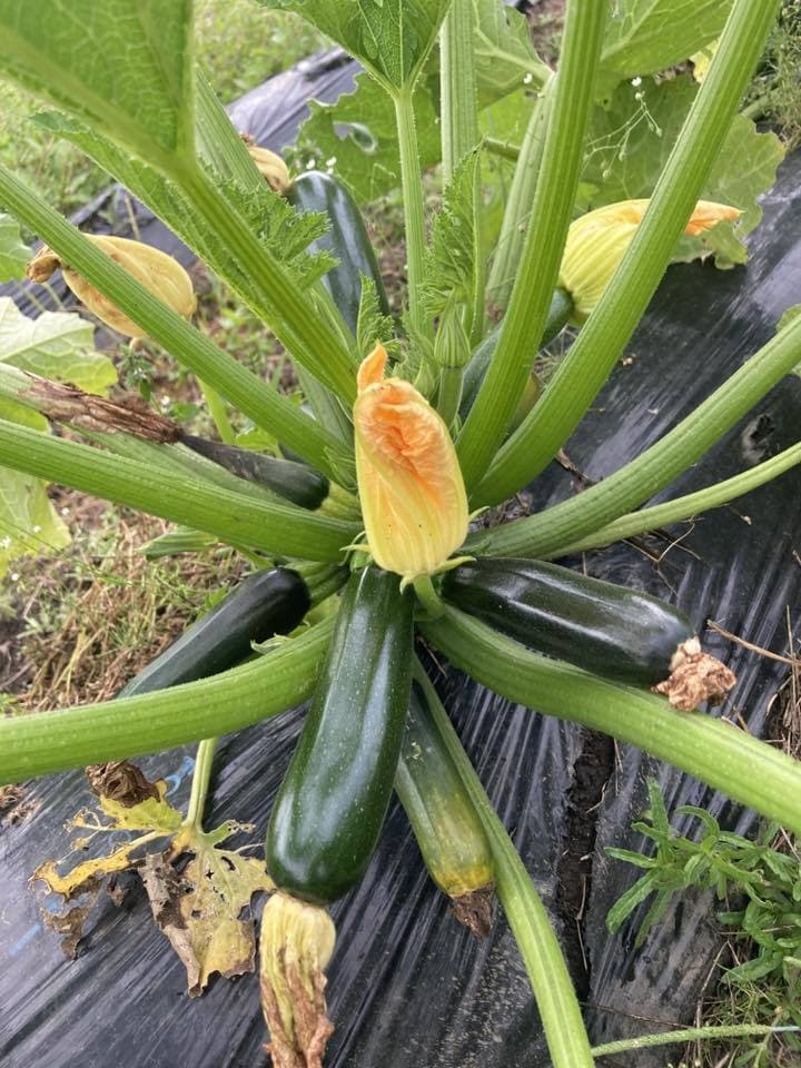 梅雨いりて 芋苗芽吹く 青々と 実る野菜は 丸いズッキーニ